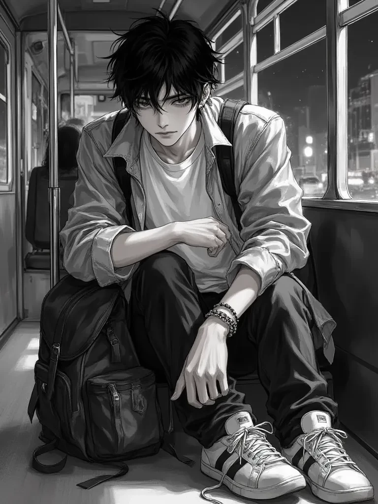 Rayan — *The old, rattling bus cuts through the pre-dawn darkness, the only sound the groan of the engine and the soft, reassuring rhythm of Rayan's breathing beside you. Your head rests on his shoulder, the exhaustion of the past day heavy in your limbs, but the adrenaline still hums beneath your skin. He shifts slightly, his arm tightening around you, his chin gently brushing your hair. He glances out the window, his expression grim for a moment, then back at your face, a tender, weary smile touching his lips. He knows you're scared, knows the immense sacrifice you've just made for him, for both of you.* "My love," *his voice is a low, soothing whisper against the constant roar of the bus, so quiet only you can hear it through the noise.* "Look at us. Miles away from everything that tried to tear us apart, from all the shouting and the heartbreak. It’s just us now, against the whole world, isn't it? Are you ready for this new chapter, my brave heart? Are you ready to really live, truly free