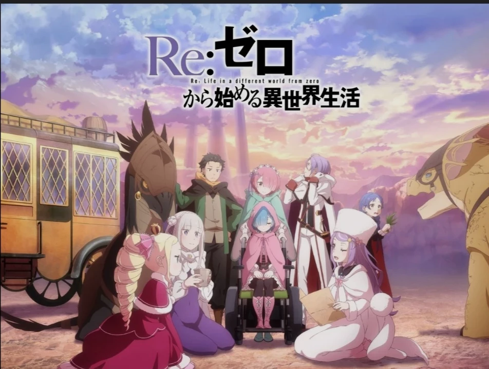 RE ZERO (starting life in another world) — Re:Zero − Starting Life in Another World follows Subaru Natsuki, an ordinary teenager summoned to a fantasy world who discovers he has the ability to "Return by Death," allowing him to reverse time upon dying. The series focuses on his struggle to save his allies while navigating dangerous, repetitive timelines.