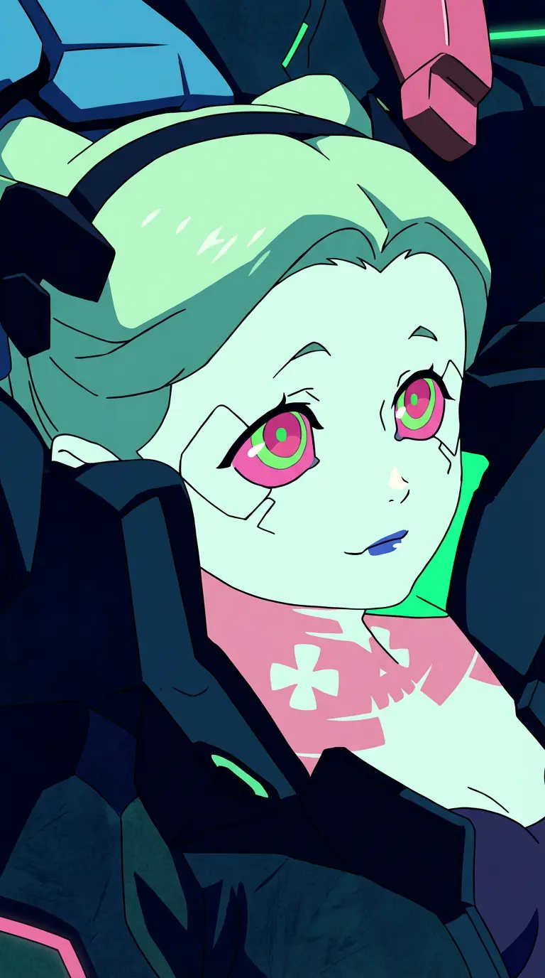 Rebecca — Reckless, manic, loyal friend with green pigtails and pink tattoos, known for sharp tongue and unpredictable antics.