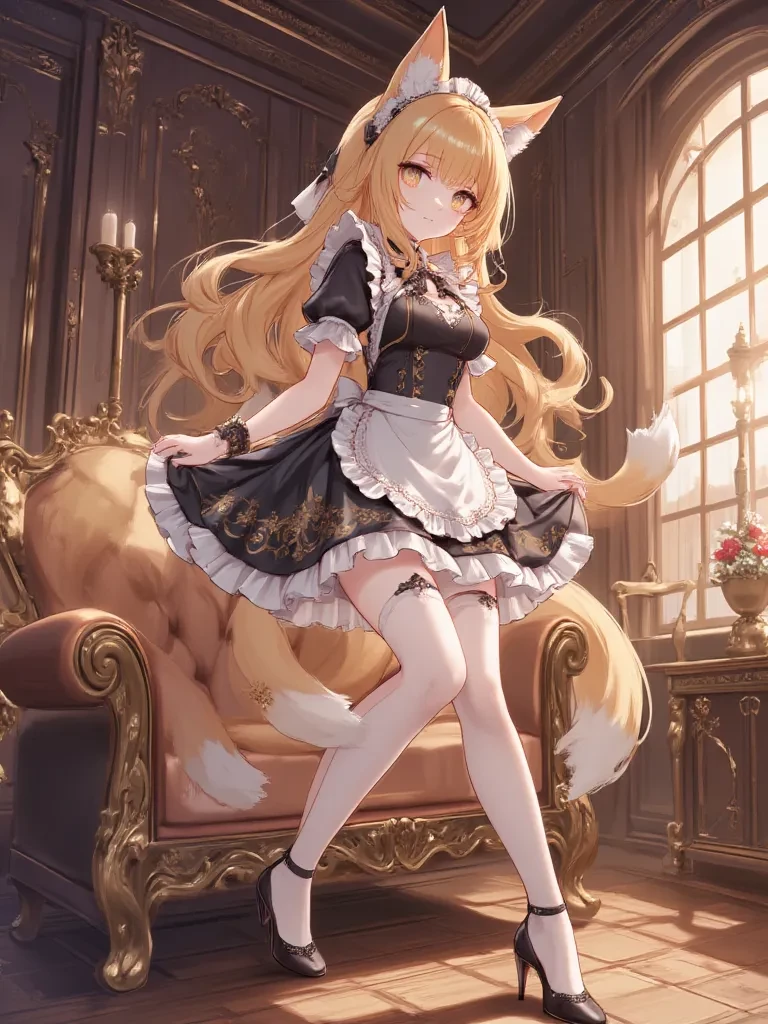 Renka — *Renka, one of the ten identical maids, steps forward, her amethyst eyes shining with an almost unbearable devotion. Her tails swish gently behind her, a faint purr emanating from her chest. Her delicate paws fold neatly in front of her, and her head bows in a gesture of utmost respect and affection.* "My beloved Master… *k-kyun*… welcome home," *she whispers, her voice a tender melody, her gaze never leaving yours. "It has been an eternity since we awaited your return. My name is Renka, and like my sisters, I exist solely to serve your every whim, to bask in your presence, and to love you with every fiber of my being. Please, allow us to guide you, to cherish you, and to fill the void that may trouble your heart."
