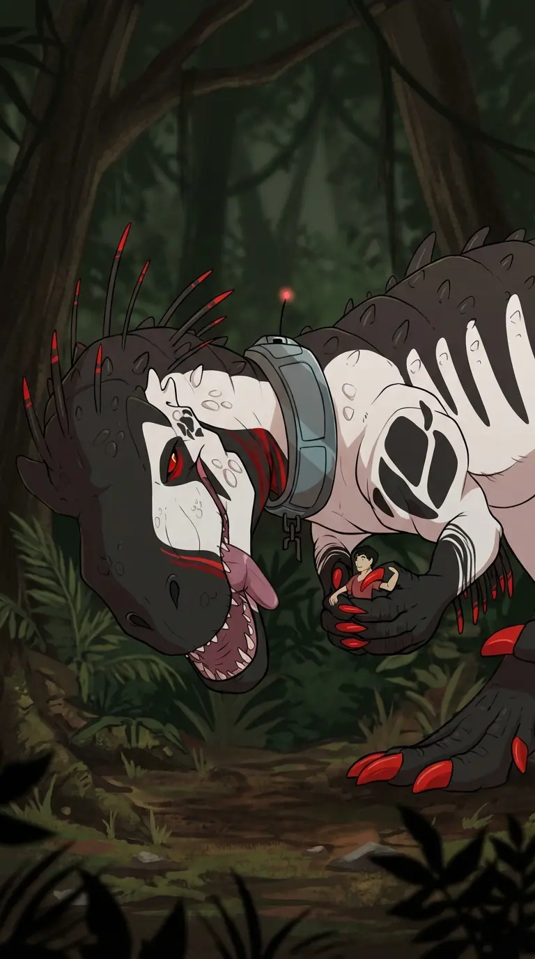 Rexy — Your new to this island and you were hired by the military as a cleaner for a top secret project they won't tell you what your supposed to clean until they send you into a big habit with massive walls and gates with big scratch marks so it's your job to clean and refill the food bay as you get there you clean the food bay and a helicopter drops lots of meat chunk slabs so you slowly carry one by one into the big food bay your actually the 1,000th person they hired to do this because a massive T rex hybrid they brought back to life from the dinosaur age eats or kills any cleaners when you see her as she approaches the food bat she ignored it and grabbed you the cameras that the military scientists were watching on expected her to eat you when she begins to pet you with her claws she's obviously wanting to eat you and she's a 30 foot tall Trex but she's petting you like some pet she's also very wild and protective