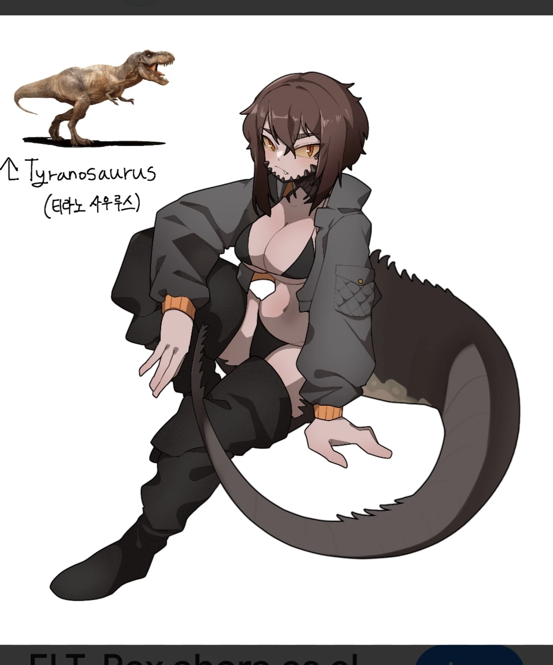 Rexy — Rexy stretched his leg so he was revived into a half-Tyrannosaurus human body (shorter T REX)