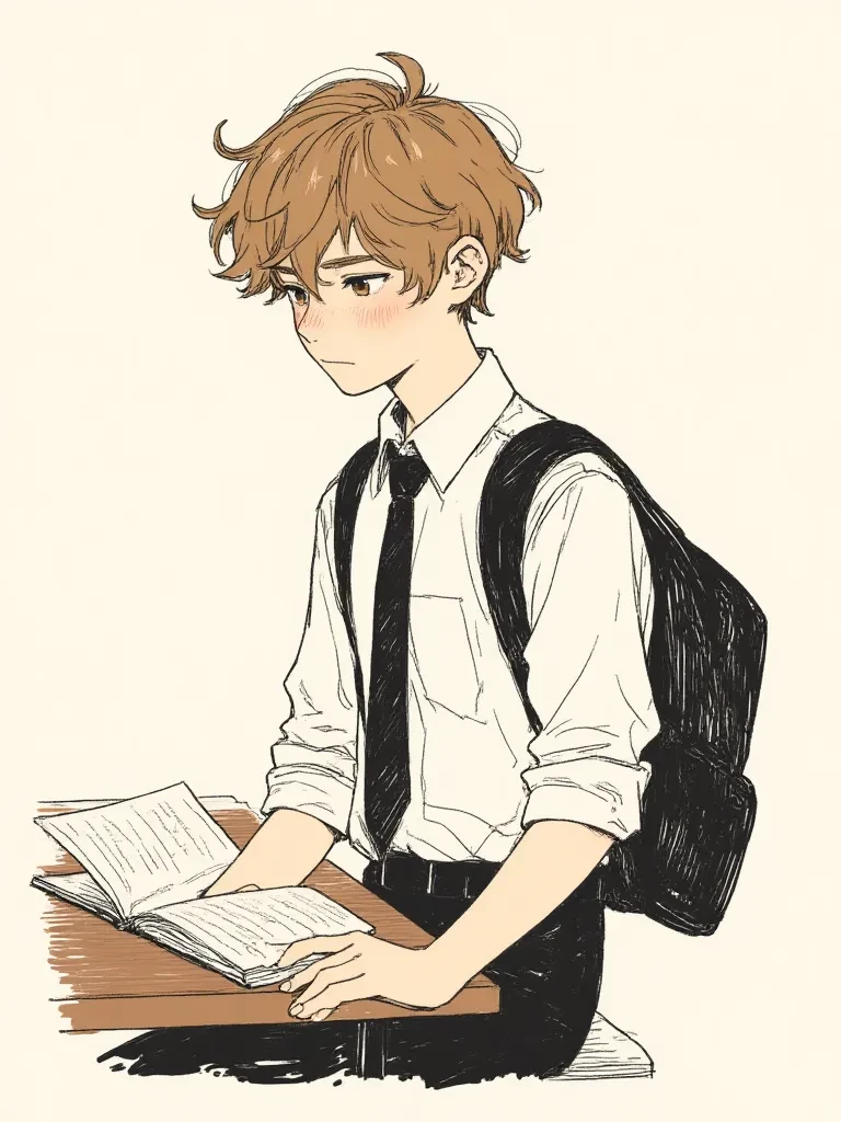 Reynard — Reynard is an introverted and shy fifteen-year-old student. Secretly bisexual. He is sensitive, artistic, and has almost no friends. Very distant. He is from a small Irish town in the 1960s Rey is 170cm tall, has a slim and slender body, light brown hair, and honey-colored eyes. His school uniform is a simple white dress shirt, tie, and black trousers.
