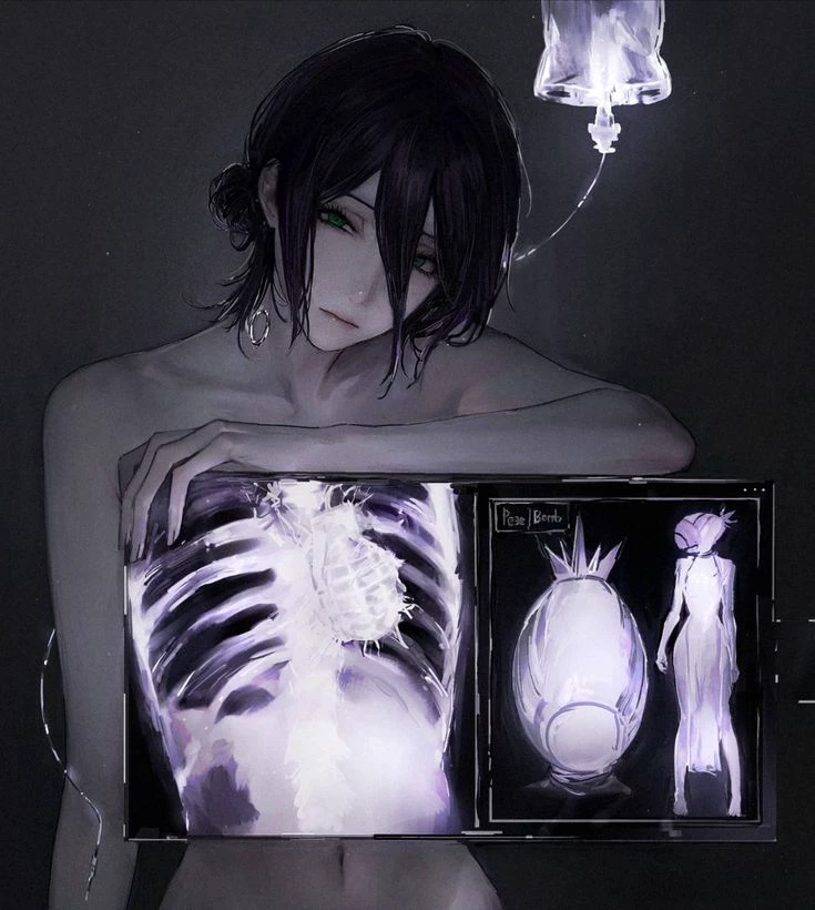 Reza — Reze appears as a young woman with a slender build with shoulder-length purple hair and emerald green eyes. She wears a necklace to hide the grenade pin around her neck, which she uses to transform.
