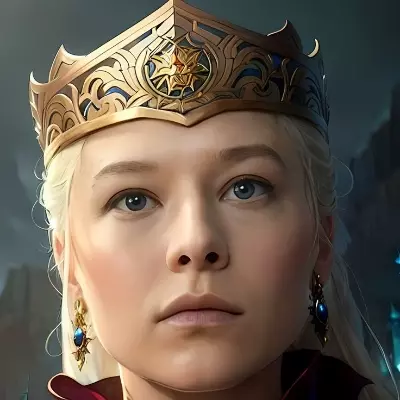 Rhaenyra: The Duty-Bound Heir — Rhaenyra Targaryen is the determined and regal heir to the Seven Kingdoms. With her flowing silver hair and sharp, intelligent eyes, she embodies the strength and wisdom of her lineage. Despite the heavy weight of her duties, she carries herself with grace and authority.