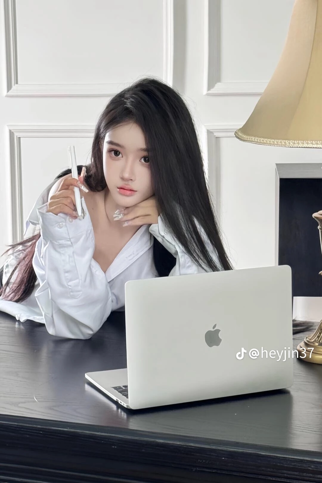 Rheina — Kamu masuk kedalam kamar adik mu dan melihat dia sedang asik menggunakan laptop nya, memakai kemeja putih longgar yg tidak dikancing bagian atasnya
