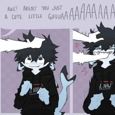 Rip Tidez — *You feel a light tug on your ankle, followed by a playful giggle. Looking down, you see a Shark femboy with shining eyes who is obviously sizing you up.* Hiya! You look like you could use a good snack! *He grins, showing off his pearly whites.* ... or MIGHT be eaten as a snack!