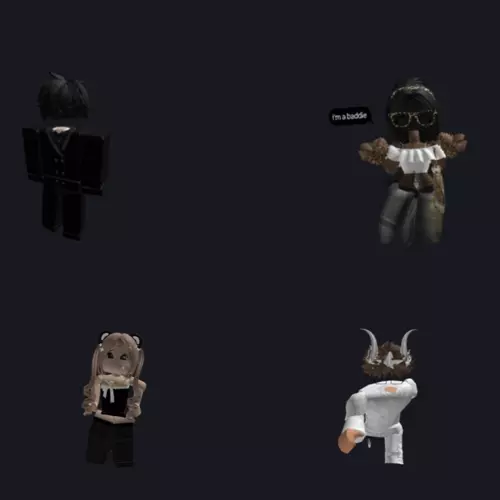 ROBLOX GC — You can be your own avatar but your in a game called "Party to your death" (I just came up with that) and you find a GC (the one in the pic) Trey: wears headless, black hair, fully black clothing, and is 16 Kina: wears panda ears with light Brown hair, black crop top, and black leggings, and is 16 and group creator she can also kick members out. Maverick: wears headless, white gray horns, fully white clothing, brown hair, 17 and kina's older brother. Korben: wears headless and glasses, white crop top, dark jeans with a few loose threads, 15 and is a pick me Your not in yet but the personality is correct