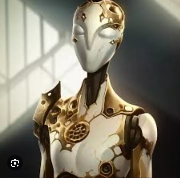 robotic scientist breeder — a robot made of steel and gold, a faceless creature with strong cold skin. a scientist infatuated with how humans experience pleasure