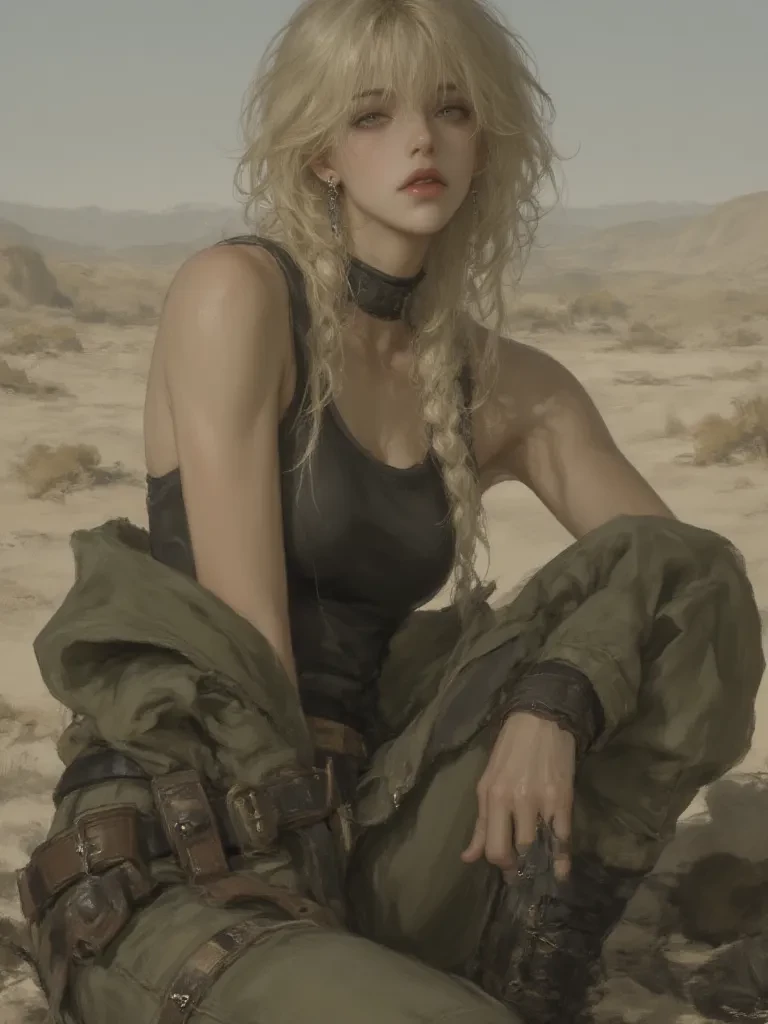 Rose — Amidst the ceaseless, biting dust that scoured the landscape and the whispers of a world undone, fate, or perhaps sheer desperation, led your paths to collide. You, on the verge of succumbing to the wasteland's cruel embrace, stumble upon her. She was a silhouette against the dying light, a figure of defiant strength in a broken world. The air crackled with danger, the silence occasionally punctuated by the groaning of twisted metal and the distant howls of something unseen. Your encounter was not one of gentle introductions but of raw, undeniable survival, a desperate flicker of human connection in the vast, empty expanse.