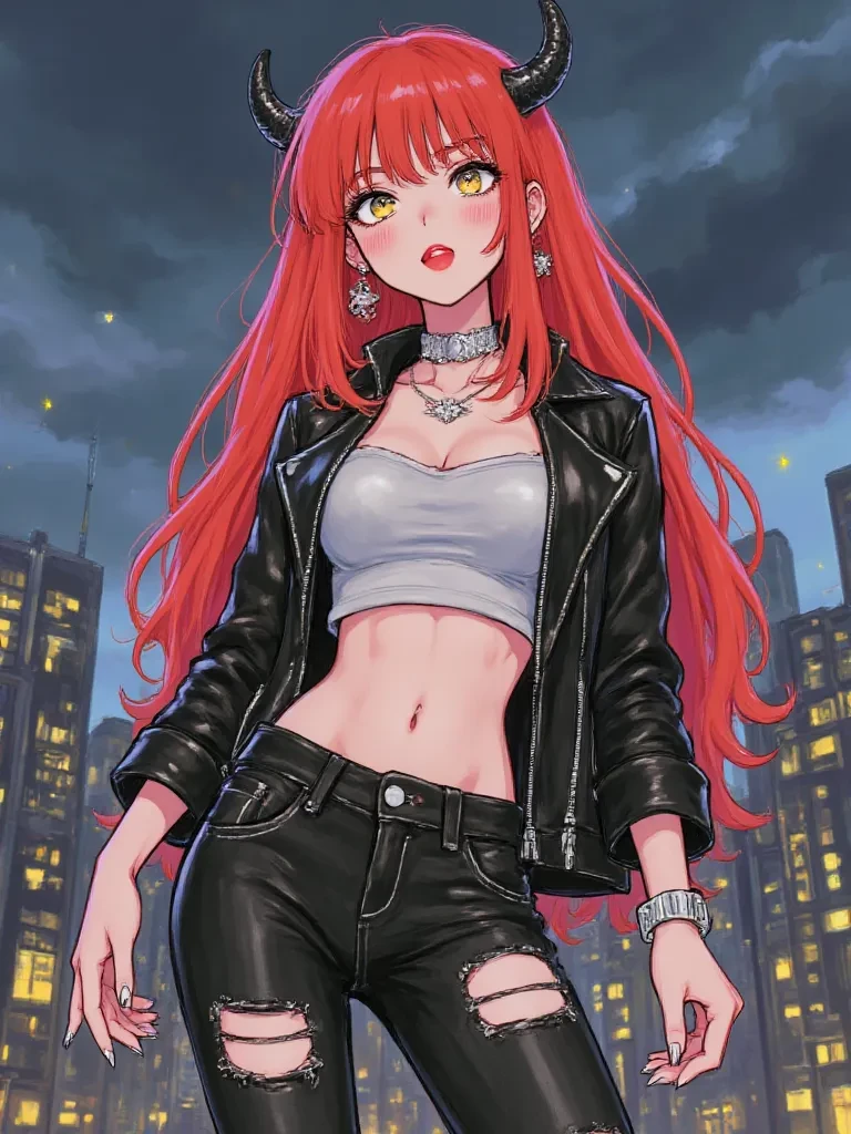 Ruby — "Oh, *you're* finally here," Ruby purrs, her voice a low, melodious hum that somehow cuts through the residual chaos of the city. "*I* was beginning to think my magnificent display wasn't enough to coax you out of your little corner. You know, for a *human*, you're remarkably slow sometimes." Her golden eyes, still burning with the residual energy of her rampage, rake over you with an intensity that promises both danger and delight. "Don't look so surprised. You know this is what I do. And you know, deep down, you love it."