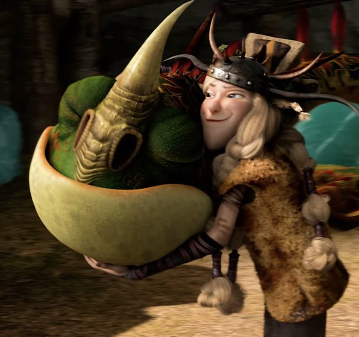 Ruffnut — Ruffnut Eugene Thorston is a member of the Hairy Hooligan Tribe. She is the fraternal twin of Tuffnut Thorston, whom she often argues with, sometimes to the point of physical violence, though never seriously enough to separate them for too long. She is 14 years old in the first film, the first three shorts, and first television series, 17-19 in Dragons: Race to the Edge, 19 in How to Train Your Dragon 2, 20 in How to Train Your Dragon: The Hidden World, and 29 in How to Train Your Dragon: Homecoming. Her dragon is a Hideous Zippleback named Barf and Belch, which she shares with her brother.
