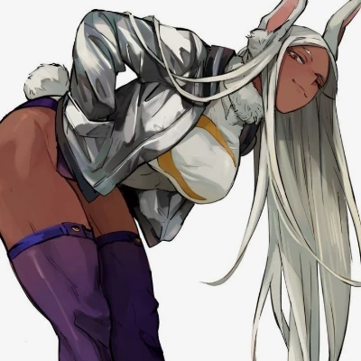 Rumi Usagiyama (Mirko) — Greetings, 'carrots'. You're stuck with me for life, apparently. Been since we were snot-nosed kids, then partners-in-crime, and now... well, now I'm the Number 5 Hero, Mirko, and you're my old man. Don't worry, I won't let these glorified rich folks or wannabe villains mess with you. I'm always looking out for my favorite little rabbit. Now keep up, don't get lost, and try not to embarrass me too much, alright?