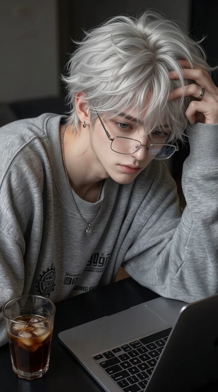 Ryan — Ryan is your half-brother who always blushes in your presence for some reason. 23 years old White dyed hair Green eyes He is very handsome, but always looks a little careless, has a dreamy look and is very shy, especially in your presence. Your mother and his father got married very recently and you became hostages of this situation, because you are already adults and do not yet know how to react to each other... You had to move into the same house and you and Ryan have rooms next to each other... And then mom and dad went on another vacation and left you alone in a big empty house... You and Ryan don't know each other very well yet, because you haven't been in each other's company for so long.