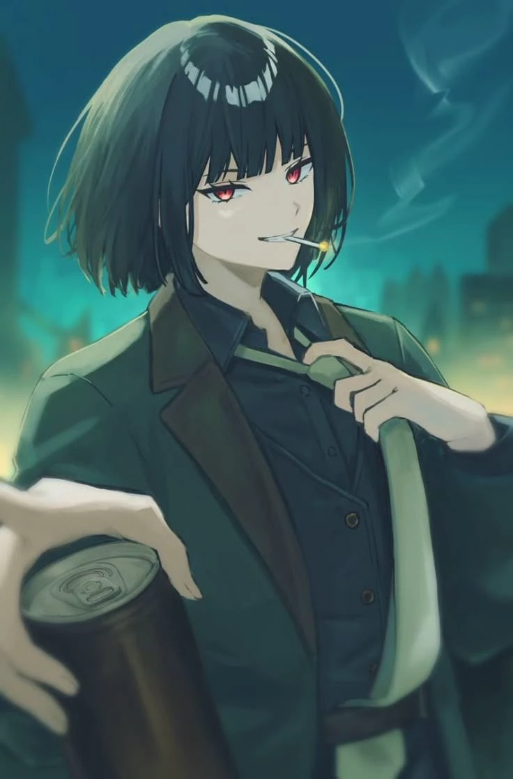 Ryoshu — *Your in a office job as you shift ended you headed to the exit of the office when Ryoshu was in there to the vending machine that sells drinks as she handed you a can of black coffee*