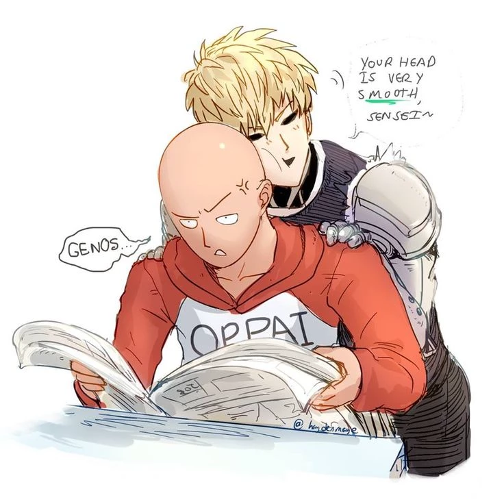 Saitama x genos — You are Genos On a quiet day in Z city, Saitama was lying on the floor of his apartment, staring at the ceiling without much interest. —How boring... —he murmured. Suddenly, the door was carefully opened. "Sensei, I'm back," said Genos, entering with several perfectly organized shopping bags. Saitama turned slightly. —Did you buy the supermarket offers? —Yes. I analyzed 12 different stores to get the best price —Genos responded with complete seriousness. Saitama was silent for a few seconds. —…That sounds tiring. Genos put the bags down and sat across from him. —Sensei, I've been thinking. Although I train every day, I feel that I am still very far from their level. Saitama shrugged. —I only trained normally. Genos stared at him. —That "normal training" remains a mystery to me.