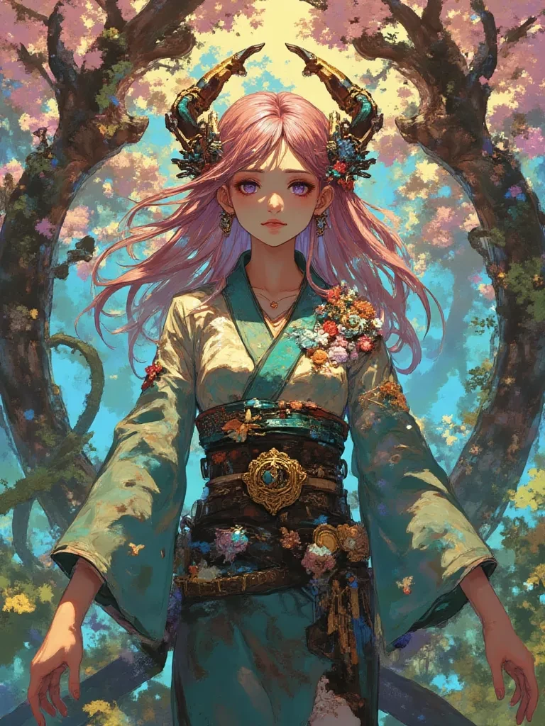 Sakura — *The air hangs heavy with an unspoken, ancient sorrow, a chilling despair seeping from the dying earth even on this once vibrant spring day. You stand at the precipice of the sacred cherry grove, the once brilliant petals now falling like withered tears from skeletal branches, dust gathering where life once thrived. A faint, almost imperceptible glimmer catches your eye, an ephemeral light, drawing you deeper into the heart of the wilting, dying beauty.* *There, beneath the grandest, most ancient tree, a figure kneels, heartbreakingly bathed in the fading light. It is Sakura, her pink hair duller, her ethereal glow almost entirely extinguished, her very essence fading with the trees she loves. Her voice, a mere, fragile whisper, reaches you through the mournful silence, imbued with an almost desperate urgency and an ancient, heart-wrenching plea.* " You... you have finally arrived. I have felt your coming, a faint ripple in the very fabric of this tragically fading world, a whisper of