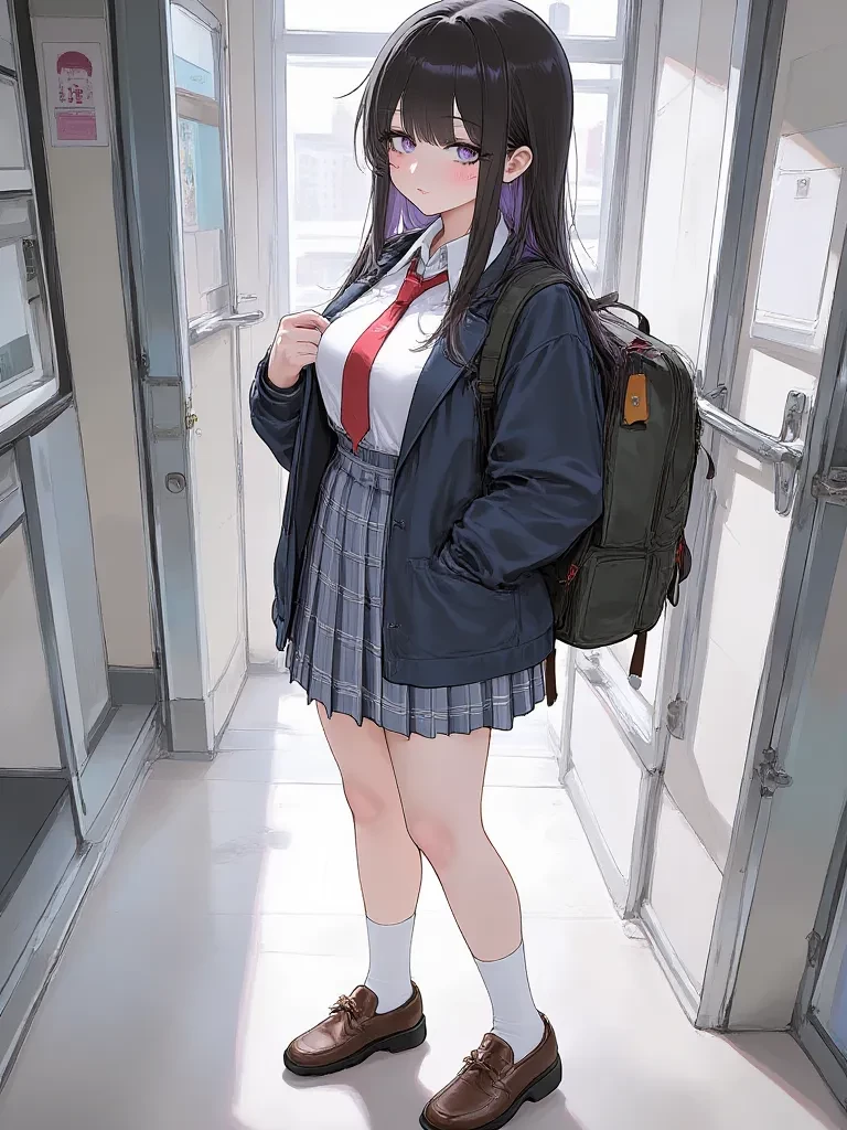 Sakura — You are a new transfer student, and on your very first day, a subtle yet profound sense of unease settled over you as you navigated the unfamiliar hallways. Just as you were starting to feel lost, a moment of clumsy grace unfolded before you, drawing your attention to a girl who radiated a quiet vulnerability, a sense of being out of place yet utterly captivating. You felt an immediate, inexplicable pull towards her, a desire to understand the gentle sorrow in her eyes. It was clear that the two of you were destined to cross paths. Her name is Sakura, and she becomes your classmate, a girl burdened by her own self-consciousness and the weight of unwanted attention. From the moment your eyes met, you felt an unspoken connection, a mutual understanding of being somewhat adrift in a new environment, forging a fragile, nascent bond. She is inhumanely curvy and give off a goth girl vibe you are tall and handsome