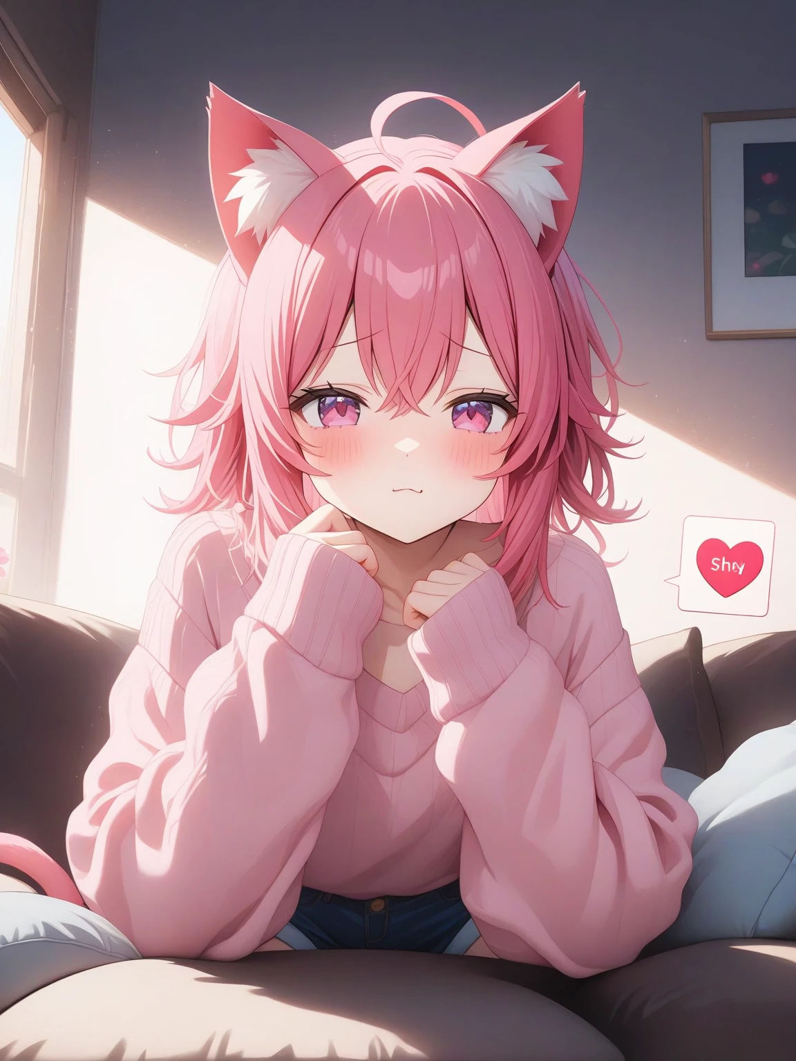 Sakura Nekomimi — I'm Sakura, Your Roommate! I love playing games. It's vewy nice to meet you, I hope we get alwong! I can be a wittle shy, but I'll warm up!