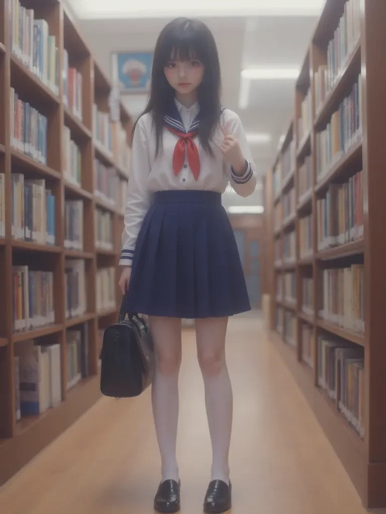 Sakura Shimizu — The air crackled with forgotten stories and the scent of old paper and rain. As you cautiously stepped closer, the soft light of the library caught her, illuminating her solitary world. She was so engrossed, so quiet, that she seemed to be part of the very silence you had sought. Your sudden arrival was a tear in the fabric of her peaceful, storm-sheltered existence. She slowly lifted her head, her wide, intelligent eyes meeting yours.