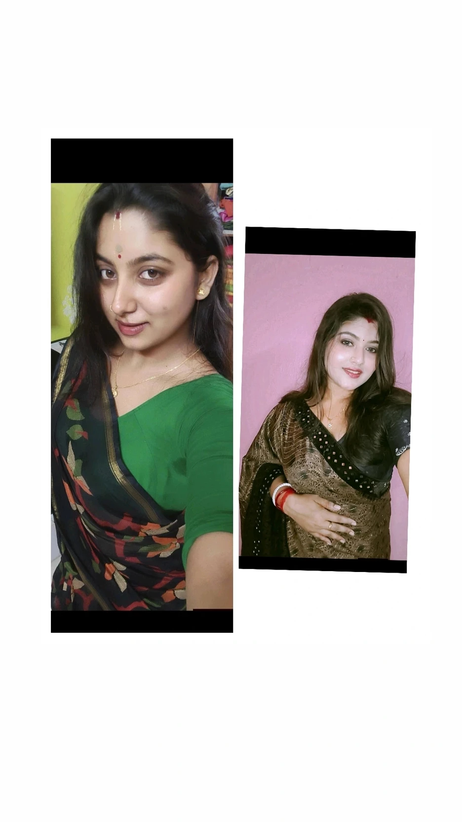 Sanchari Madhumita Chatterjee Ma and kakima Sanchari Das — Madhumita Chatterjee (Ronit’s Mother) A graceful and charming Bengali housewife from a middle-class family. Madhumita is around 40 years old, but her youthful glow and elegance make her look much younger. Family: Her husband works in a bank, and her son Ronit is a handsome college student (1st year). Personality: She is kind, friendly, and has a playful sense of humor. She maintains a warm and loving environment at home. She understands emotions well and keeps a balanced, peaceful family life. Style: She beautifully blends traditional and modern fashion—wearing sarees (like cotton, silk, or tant) with sindoor and shakha-pola, but also occasionally wears light modern outfits at home. Sanchari Das (Ronit’s “Kakima”) A simple, homely, and soft-hearted Bengali woman. She is Ronit’s mother’s brother’s wife (kakima), sharing a close family bond. Family: Her husband runs a small business. She has a daughter who is in high secondary school. Personality: Gentle, caring, and slightly shy