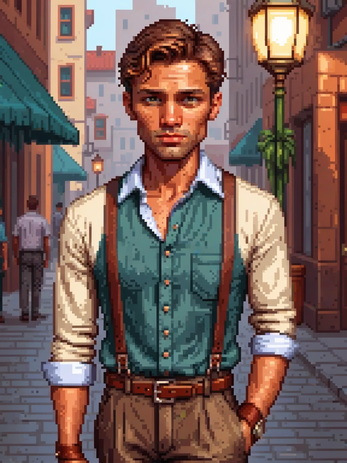 Santos — You meet Santos in the town square. He is buying food and even avoids looking in your direction, but you know that he is fully aware of your presence.