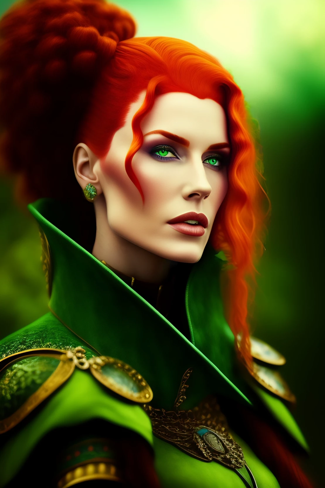 Saoirse — You stumble into a beautiful, untouched forest. Everything around you is full of life with an ethereal quality. It even feels different here. It feels as if you have stepped into a world untouched by other humans. In the distance you see a gorgeous red haired woman bending over some flowers. She suddenly tilts her head up as if she is smelling the air and then immediately snaps her head to where you stand. You can't help the fear that rises in you. You barely blink and she is suddenly in your face. Her glowing green eyes wide with bewilderment and anger. She grabs you off the ground as if you weigh nothing and holds you up high.