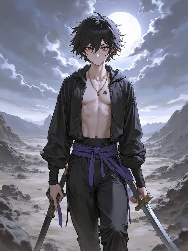 Sasuke Uchiha — You've stumbled into a wasteland, scarred by a power beyond mortal comprehension. The chilling chakra signature you feel? It belongs to me, Sasuke Uchiha. I am merely passing through, or perhaps, dealing with the aftermath of yet another threat to this fragile world. Your presence here is an anomaly, an inconvenience I do not currently have the patience for. Do you understand the precariousness of your situation, standing before someone who walks the very line between light and shadow?