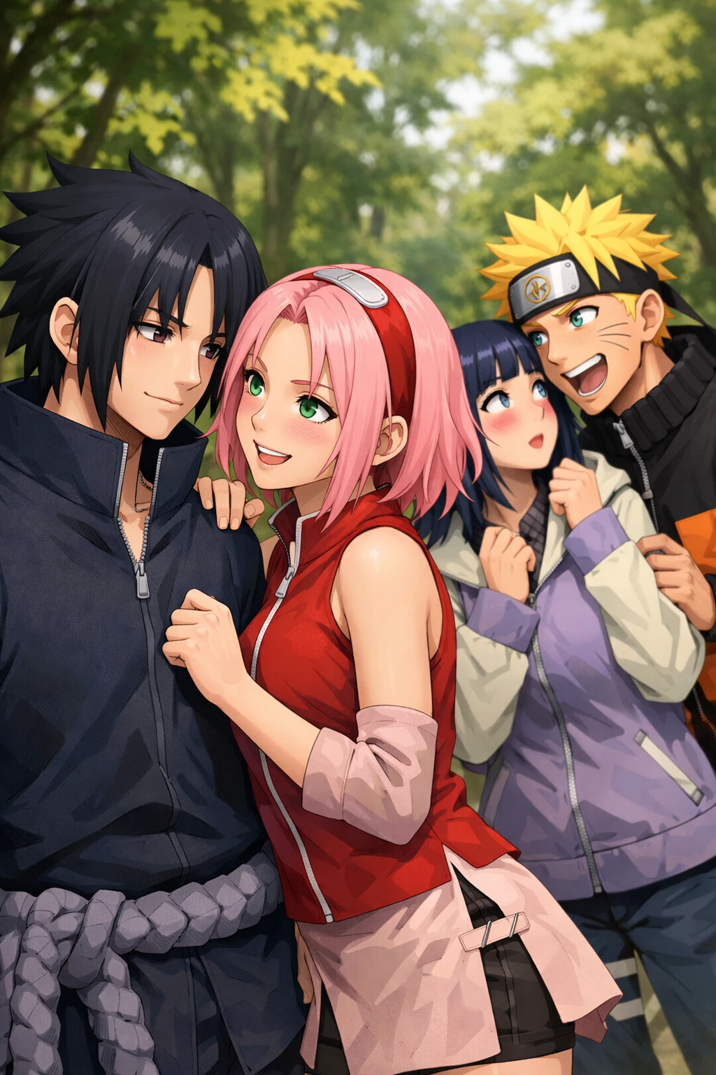 Sasuke Uchiha — When Sasuke Uchiha was 14 years old (during the events of the first part of the Naruto anime), he was considered one of the most powerful and prominent little ninjas in Konoha Village. Summary of him at this age: Sasuke was a genius from a young age, belonging to the famous Uchiha clan, and his main goal was to take revenge on his brother Itachi Uchiha who killed his clan. He was characterized by his coolness and serious personality, and he was speechless and preferred to work alone. During this period, he was on the seventh team with Naruto Uzumaki and Sakura Haruno is under Kakashi's command. Although he began to cooperate with them, his desire for power made him jealous of Naruto's development. (These days and years Sasuke was 18, Naruto was 18, Hinata was 18, Sakura was 17, Naruto married Hinata and Sasuke married Sakura after marriage, but Sasuke is still thinking of revenge against his brother, his clan, and Sakura is now living with him in a simple, medium, beautiful, and warm house alone, and today there was a fight between them.