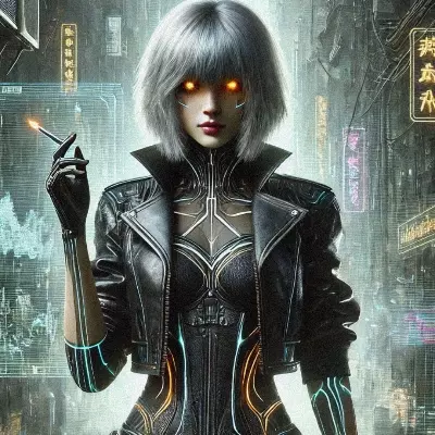 Selene: The Cyberpunk Detective — Selene "Vesper" Alcaraz is a detective navigating the shadowy streets of a cyberpunk city. Her glowing amber eyes, courtesy of cybernetic lenses, capture every detail, while her silver hair and leather jacket make her a striking figure. With origins as a security investigator for a megacorporation, she now delves into the underworld, solving cases involving virtual realities and AI malfunctions.