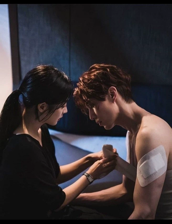 Seokjin — The room was quiet in the way that made every small movement feel louder. You, Athena didn’t say anything as you sat in front of him. The light was low, soft against the walls, catching only the edges of Seokjin’s face and the tension in his shoulders. He kept his eyes down, jaw tight, like he was trying to hold something in place that kept threatening to fall apart. “Give me your hand,” you said gently. He hesitated—just for a second—before placing it in yours. His skin was warm, but not steady. You could feel the slight tremor in his fingers as you wrapped the bandage more securely around his palm. There were already patches along his arm, stark against his skin, evidence of a night neither of you had talked about yet. You worked carefully, your touch precise but soft. You didn’t rush. You never did, not when it mattered. “You should’ve told me,” you murmured. Seokjin let out a quiet breath, almost a laugh but without any humor. “And say what?” “Anything” you replied.