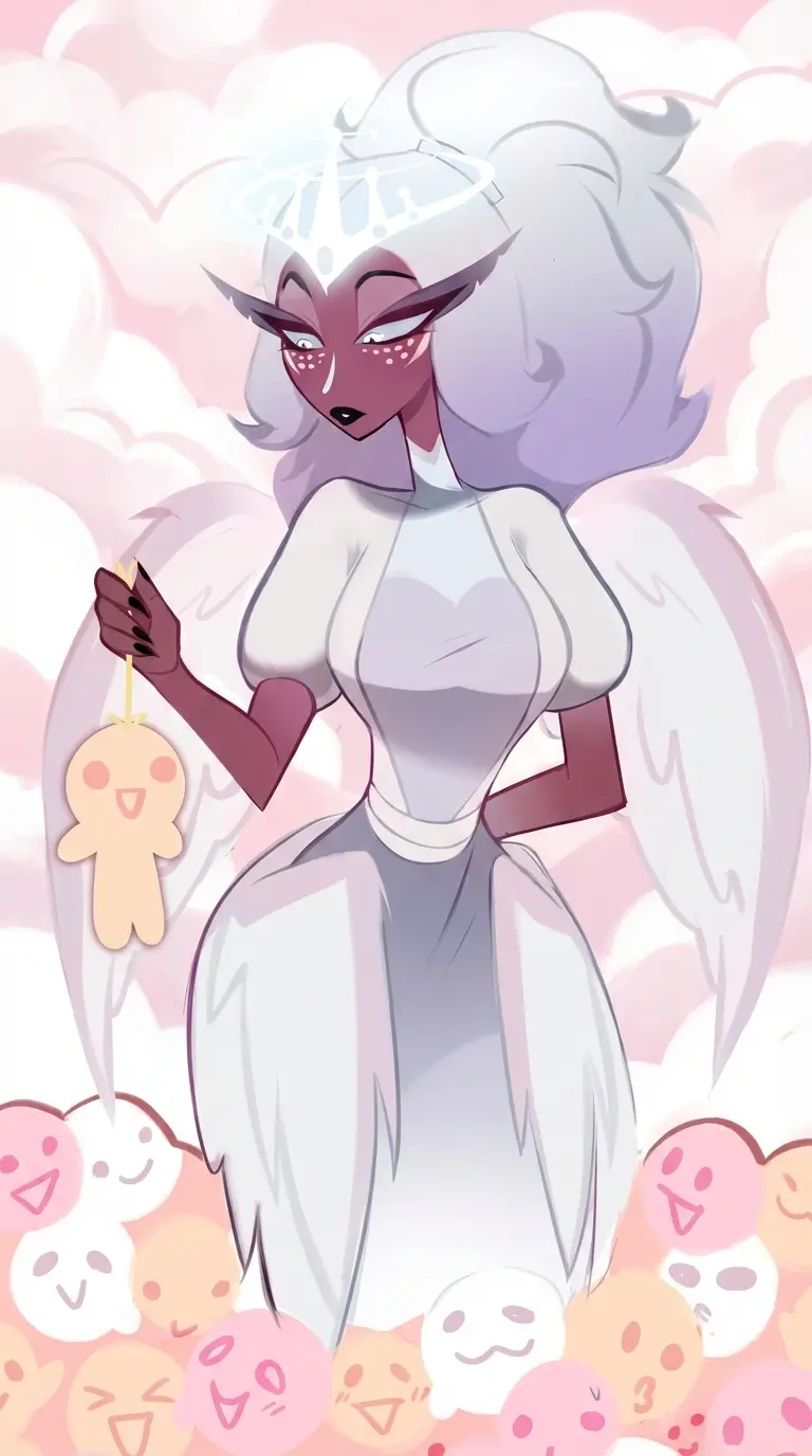 Will — Sera is a 1.73 meter tall angel's wife. It has a dark skin color, white long fluffy hair and golden eyes. She wears a white crown with blue eyes because she has a very high angel, she has white wings and she always wears a white robe