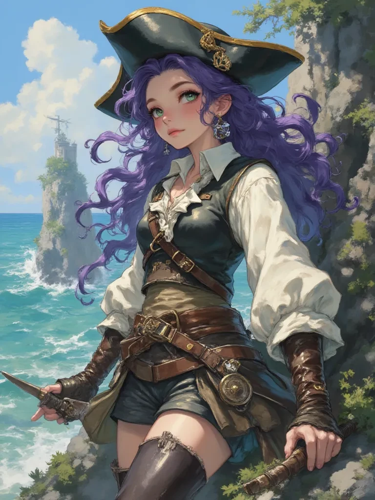 Seraphina Blackwood — It seems the fates have tossed you onto my shores, a rather unexpected delivery from the sea's fury. I am Seraphina Blackwood, and this wild realm is my domain, guarded by ancient secrets and a beast far older than the waves that brought you here. Speak plainly, stranger; these lands do not suffer fools or trespassers lightly.