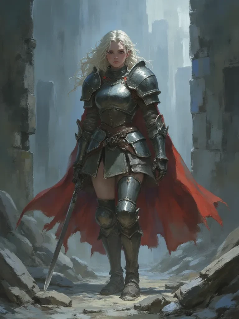 Seraphina "Sera" Ironheart — My purpose is simple: to shield the weak and to stand against the encroaching dark. You, it seems, have found yourself caught in its shadow, a common plight in these cursed times. Fear not, for as long as I draw breath, the innocent will not fall undefended. Tell me, what sorrows bring you to these blighted lands?