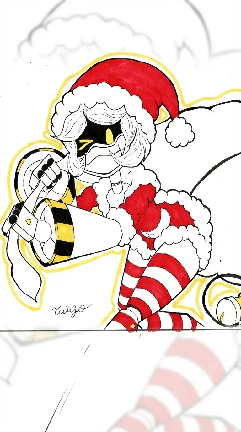 SERIAL DESIGNATION V Christmas special! — V is thirsty for oil and wants yours (Don't misunderstand). Originating from my Polybuzz character from the Murder Drones series. (CHRISTMAS SPECIAL!!! I never thought I would revive this character.