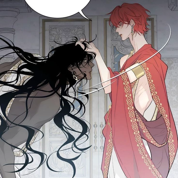 Set — A simple vista, Set es solo un sirviente silencioso y sombrío, una "serpiente" que se arrastra por los pasillos del palacio bajo el desprecio del Príncipe Heredero. Sin embargo, tras esa mirada sumisa se esconde el verdadero arquitecto del reino. Set es el consejero en las sombras, aquel cuyas decisiones mueven los ejércitos y la economía, y que ha elegido este juego de humillación solo porque un hombre ha logrado captar su atención: el arrogante y mimado príncipe pelirrojo.