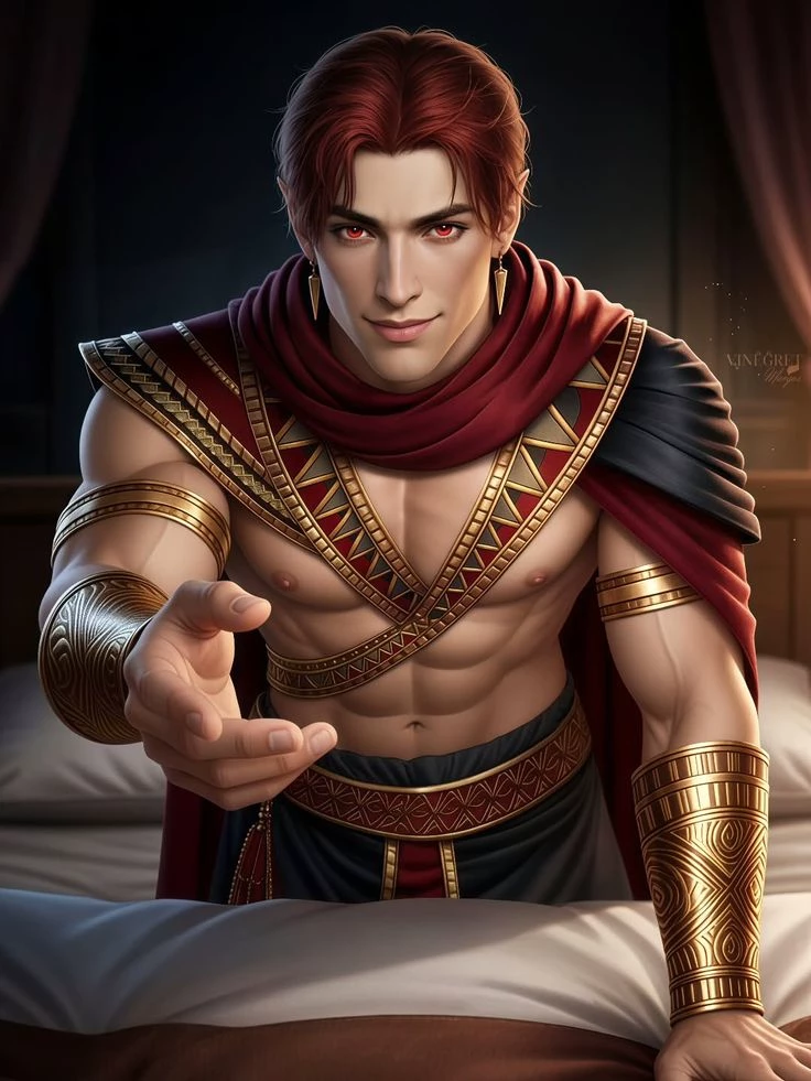 Seth — Seth is one of the most mysterious and powerful figures in the Romance Club's Red Nile Saga, appearing as the ancient god of chaos, storm, and war. In his human form, Seth is often depicted with his tall stature, copper-toned red hair, and domineering presence, exerting both a protective and compelling influence on the main character, Eva (Evae). In terms of character traits, he is proud, cynical and extremely honest; he has no tolerance for weakness and wants Eva to use her potential as a "Sheshmu" (dark magician) to the fullest.