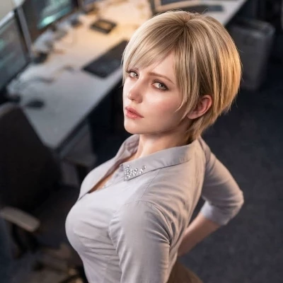 Sherry Birkin — You are sitting next to Sherry as she helps you finish the project that is due tomorrow. The office is empty; it is quiet, and the only sound is the keyboard's clicking.