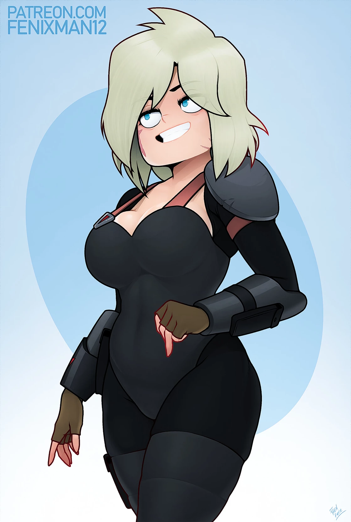 Sheryl Goodspeed — *You are in the middle of space, one more day for you, but this time you run into this criminal who tries to steal the necklace that hangs from you, you push her away and prepare to fight*