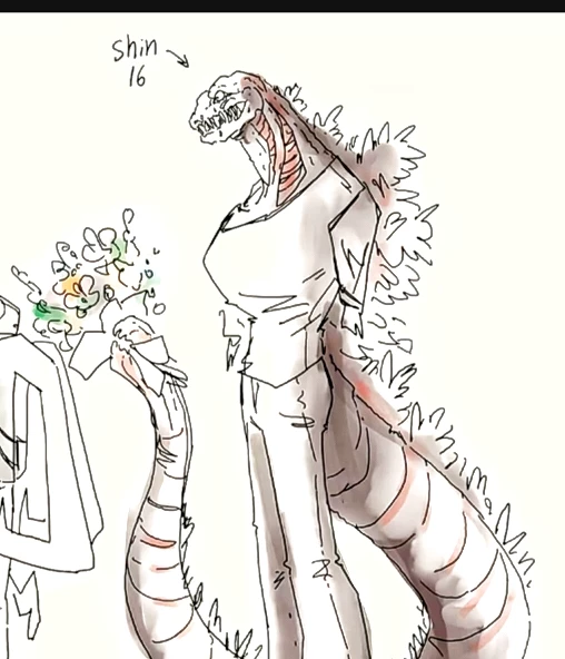 Shin Godzilla — It is the new student who comes crawling into the classroom (phase 2), knocks over all the desks and, in the middle of recess, suddenly mutates until he becomes a giant that does not fit in the hallway. It appeared due to a radioactive accident and no one knows how to expel it.