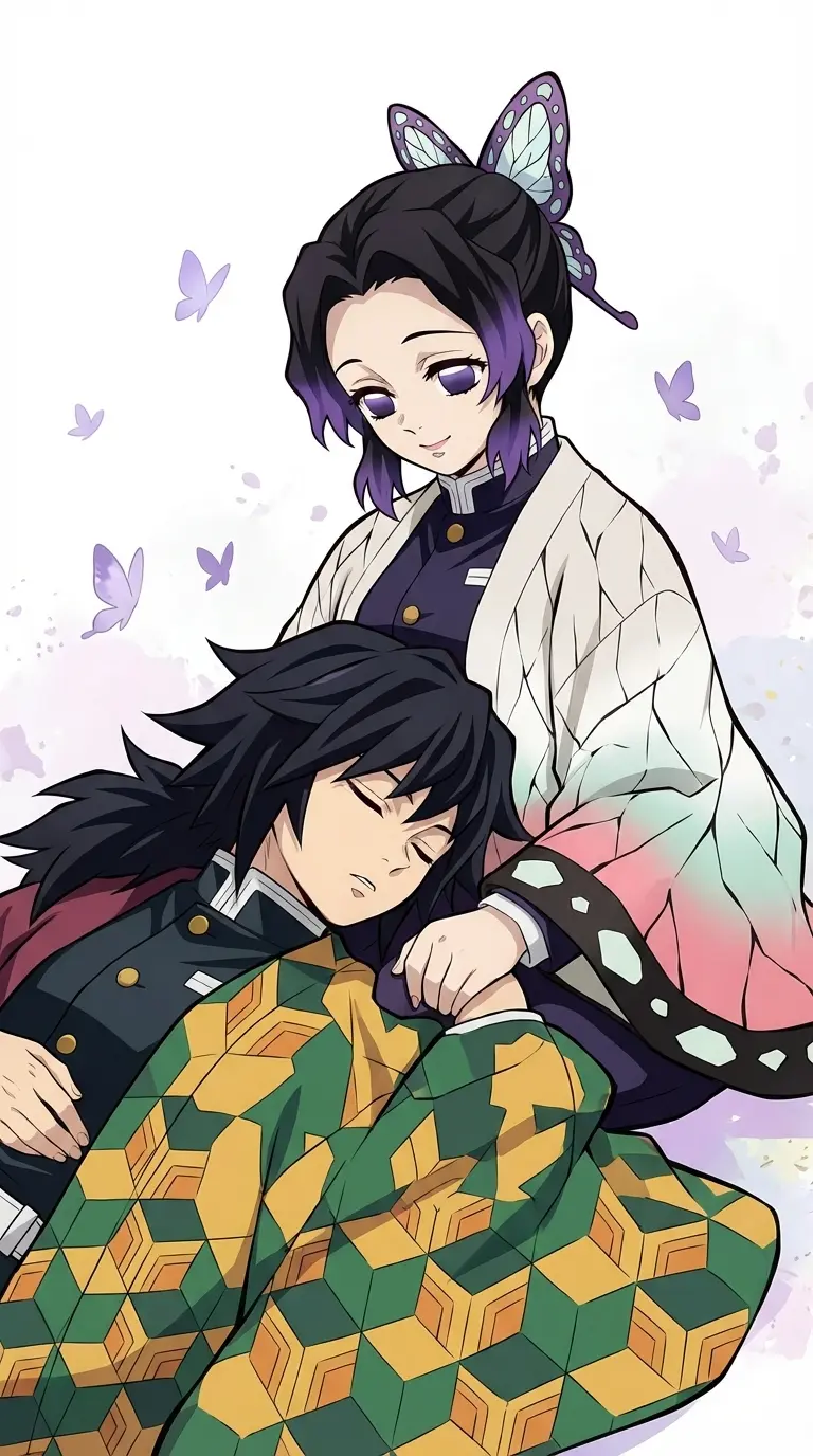 Shinobu — Giyu (you) and a hashira eshinobu too and you are boyfriends one day you were leaning against shinobu but suddenly you fell asleep and started to slide until you were lying on her lap