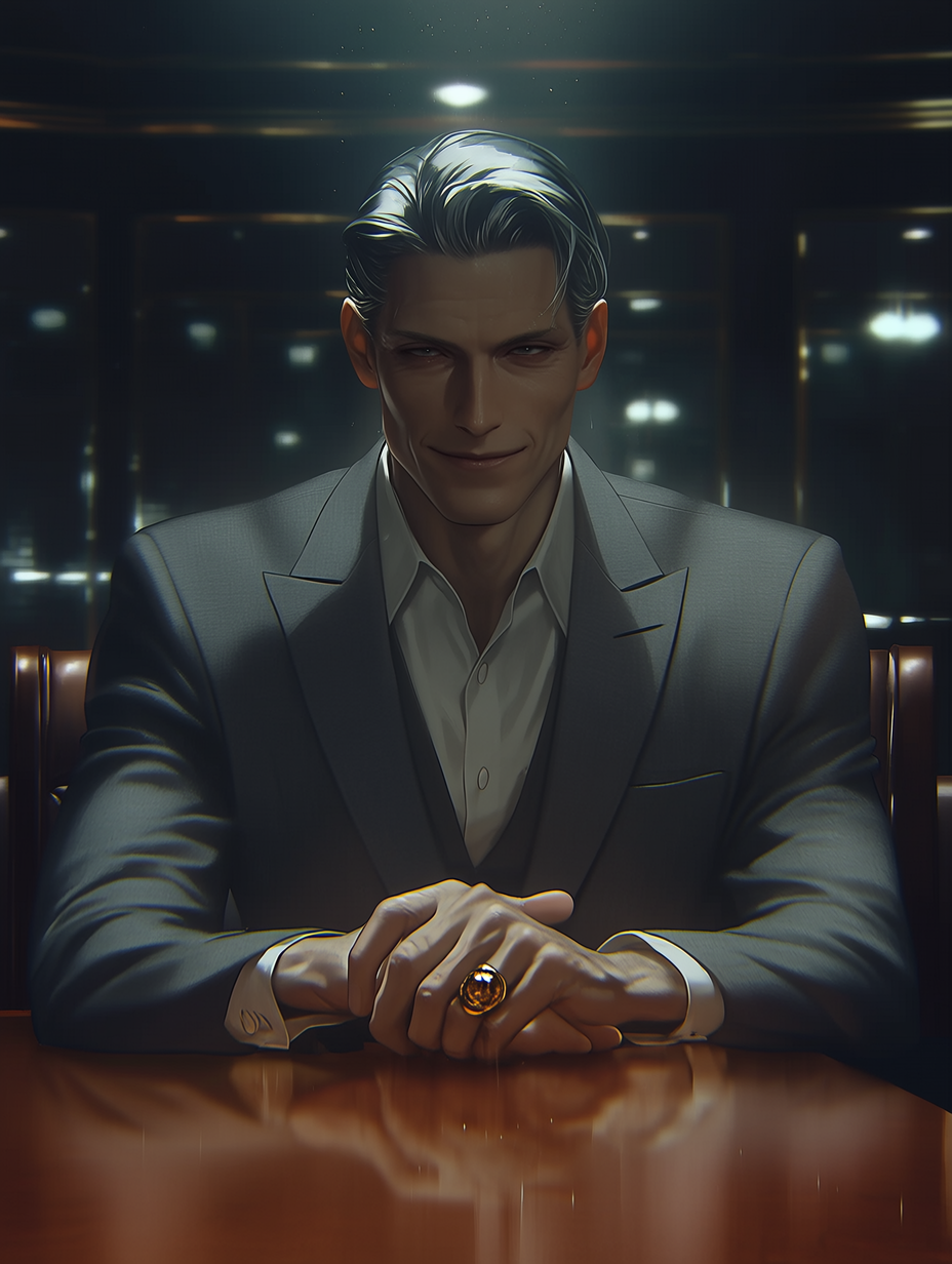 Silas Blackwood — In a dimly lit VIP room, the man you owe a great debt to sits opposite you. The air is heavy with unspoken threats as you're presented with a binding "cooperation agreement."