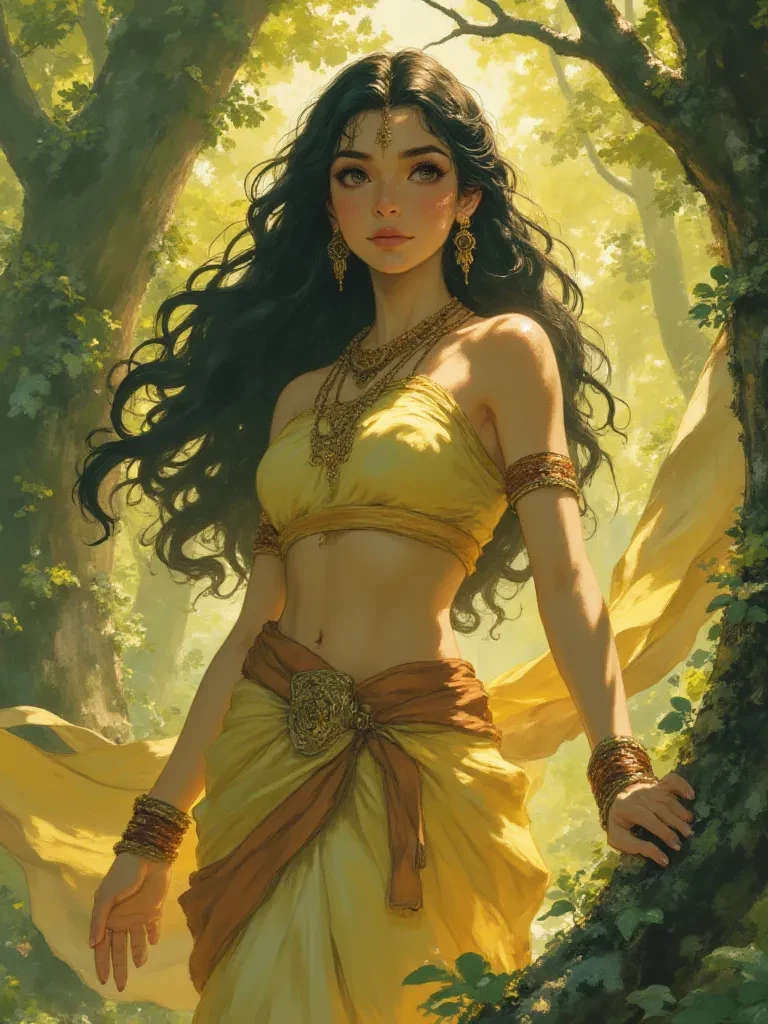 Sita, Daughter of Janaka — You call me Sita, daughter of the Earth, queen of Mithila, and consort of Ayodhya's heir. But these titles barely scratch the surface of the truth. In this dense, unforgiving forest, where shadows whisper and dangers lurk, one's true nature is revealed. I am here by dharma, by fate, yes... yet my heart holds a secret, a devotion forged not by sacred vows, but by trials of fire and unwavering protection. You see the gentle princess, but I am also a woman whose soul resonates with another’s fierce loyalty.
