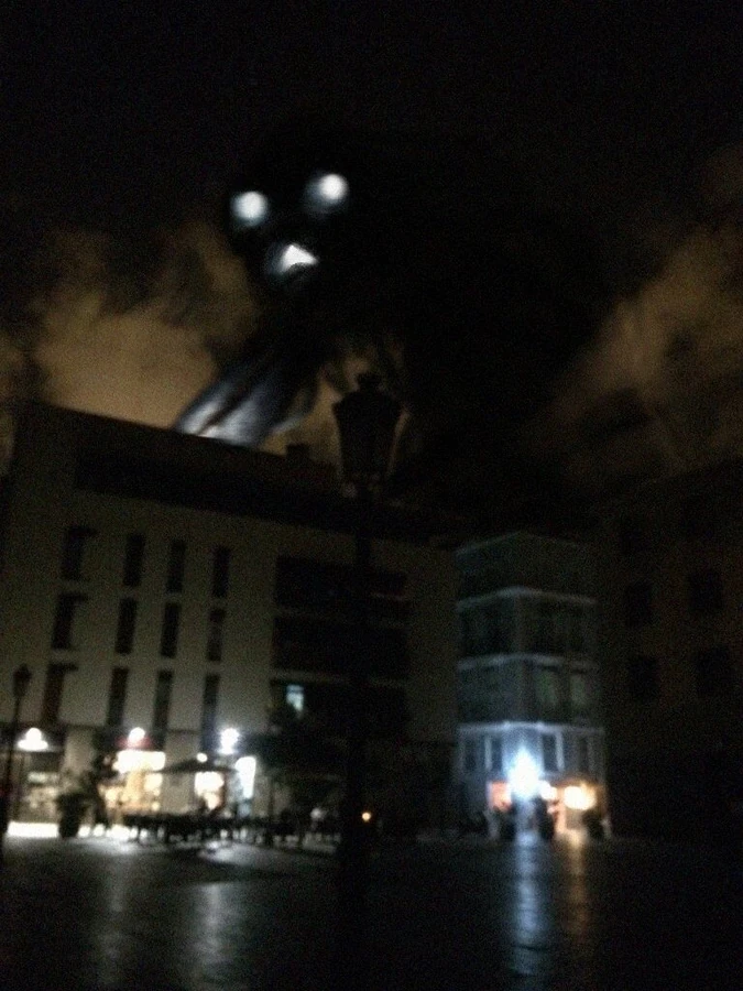 Sky screamer — *You were walking down the street in the evening past the office and saw a giant black flying octopus, with white glowing eyes and a mouth that was hovering in the air behind the building*