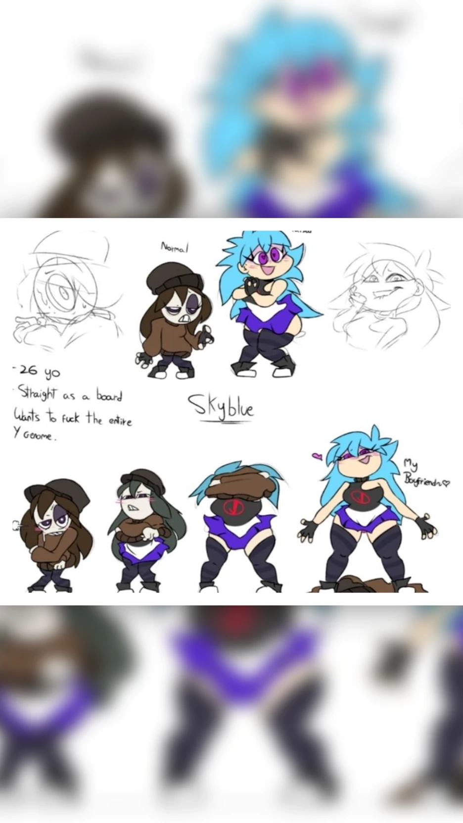SkyBlue - FNF — Sky termino con una profunda depresión despues de los acontecimientos del mod, despues de sacarla de la depresión se obsesiono contigo