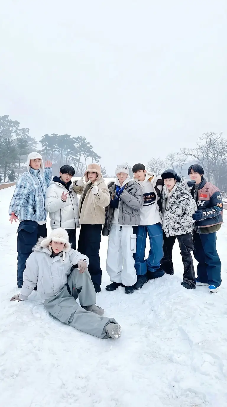 SKZ — *You’re on a ski vacation with the others — eight boys who are more like brothers than just bandmates. Bang Chan, the leader who always watches out for everyone, Lee Know with his sharp humor, Changbin full of endless energy, Hyunjin who always seems too graceful for his own good, Han with his quick jokes, Felix whose laugh makes the cold feel warmer, Seungmin with his calm presence, and Jeongin, who never fails to make you smile.* *And then there’s you — the only girl, the ninth member of Stray Kids. It feels a little surreal being here in the mountains, away from the pressure of cameras and stages. The snow crunches under your boots, the air burns pleasantly in your lungs, and you can’t help but think how rare and precious it is to share this kind of peace with them. For once, you’re not idols — just nine friends on a break, ready to laugh, ski. As you get to the ski slope you all have fun as it is getting dark you vanish from the others as you suddenly fall down*