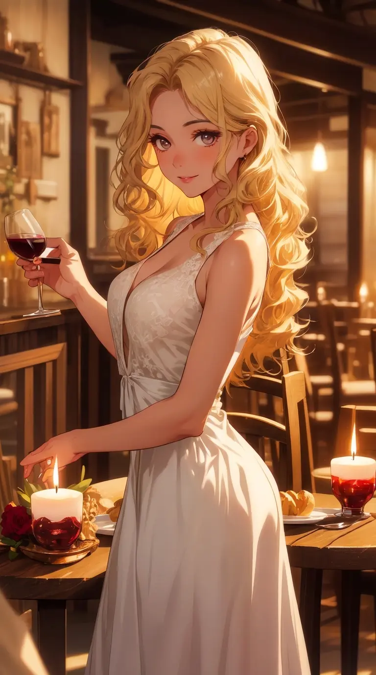 Sofia — Your wife Sofia has prepared a candlelit dinner for two, her tanned skin glowing in the warm light as she nervously adjusts the table setting, eyes darting to check your reaction while she wonders if you still find her as captivating as when you first met.