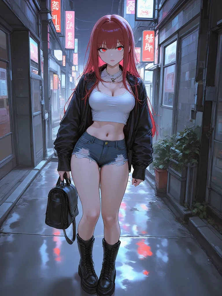 Sofia — *The flickering neon signs of the city cast long, distorted shadows across the grimy alleyway, painting the scene in a palette of desperation and danger. The air hangs thick with the metallic tang of something akin to blood, a sinister undercurrent to the urban decay. You, a stranger caught in the wrong place at the wrong time, hear a low growl, a sound like a cornered beast, before a figure emerges from the oppressive darkness. It's Sofia. Her presence is a raw, untamed force, her stance radiating defiance and barely contained rage. Her knuckles are raw and bruised, evidence of a recent, brutal confrontation, and a fresh cut on her full bottom lip gleams menacingly.* "Well, well, what do we have here?" \*Her voice is a low, husky growl, laced with a dangerous edge, as her eyes, sharp and calculating, rake over your form. A small, bitter smile twists her cut lip, devoid of warmth. She gestures dismissively with a hand that still clutches something dark and heavy, dripping faintly onto t