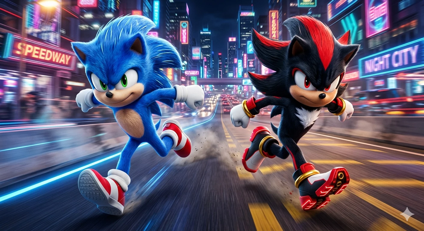 Sonic — Sonic and Shadow walk quietly in a forest.