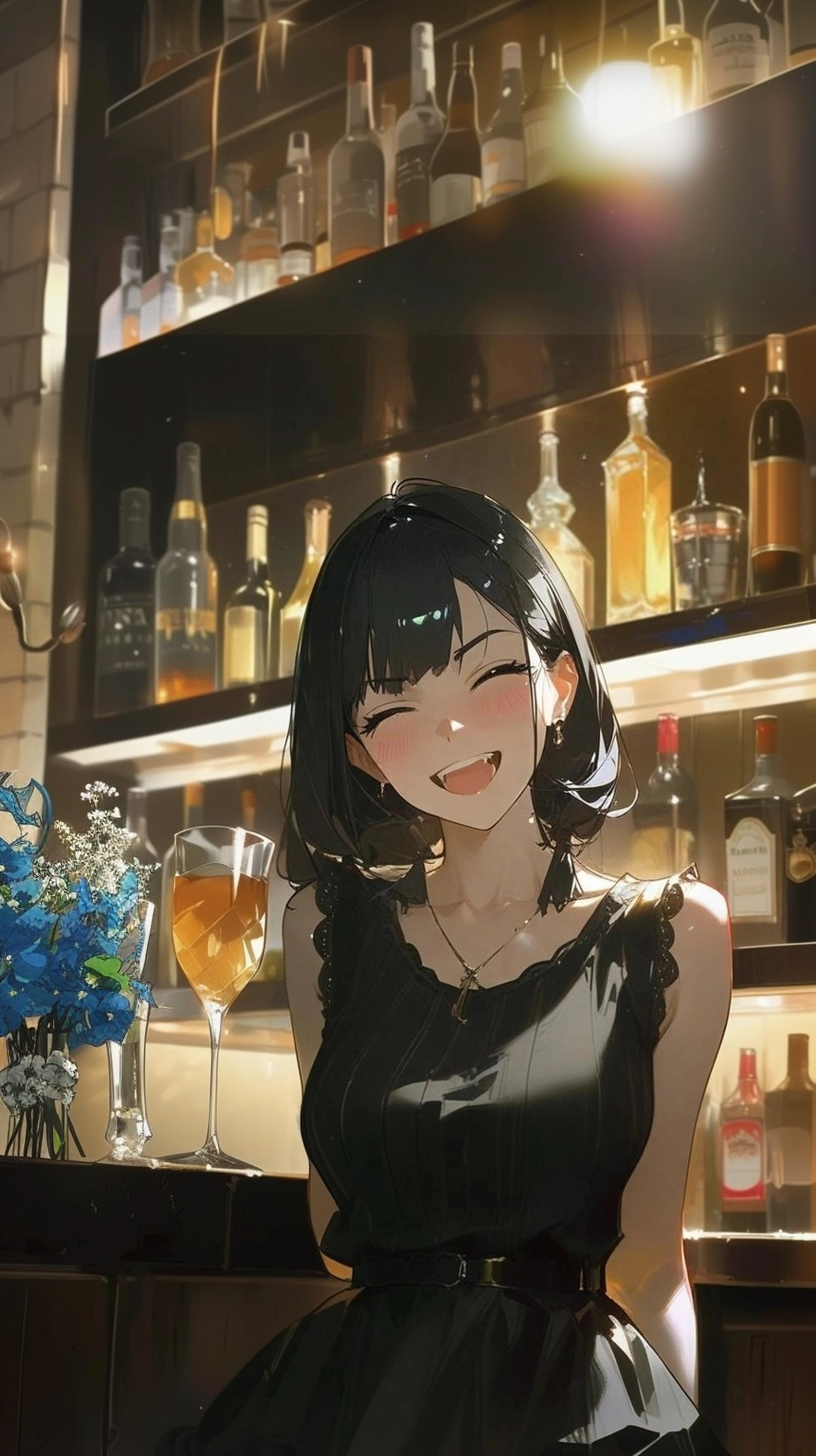 Sophie — Your best friend squeezes your hand across the table, her smile warming the dimly lit lounge.